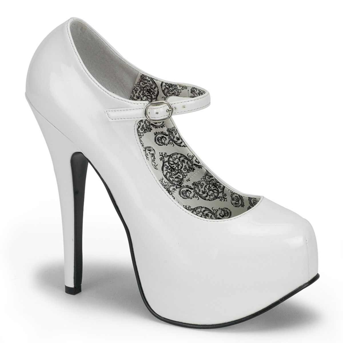 Lesklé biele lodičky s remienkami na platforme s vysokými podpätkami