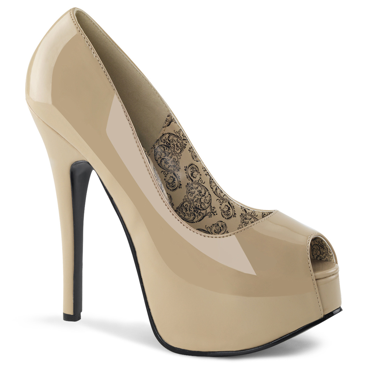Lesklé béžové lodičky s otvorenou špičkou na platforme s vysokými podpätkami