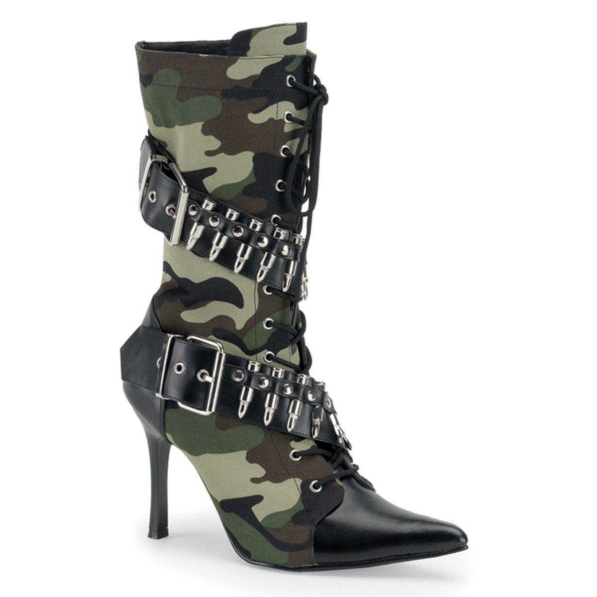 Lesklé kamufláž kotníkové čižmy na podpätku