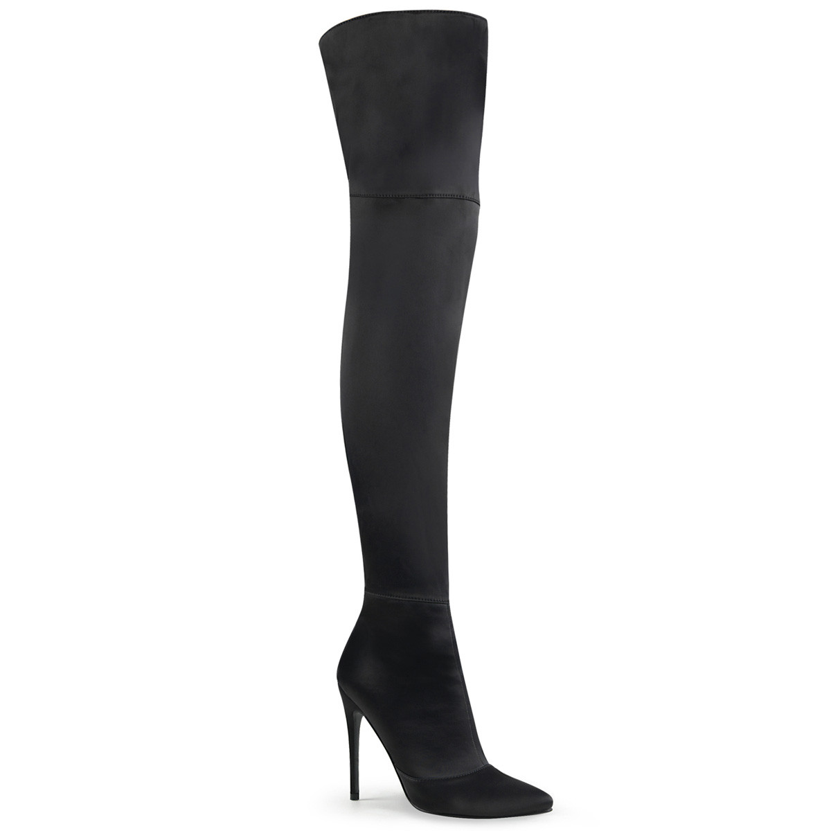 Čierne čižmy nad kolená na opätku na vysokom podpätku