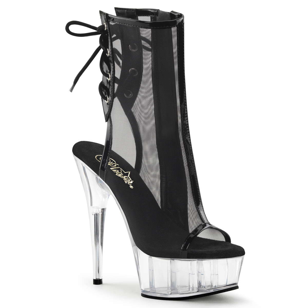 Čierne čižmy s otvorenou špičkou na platforme s vysokými podpätkami