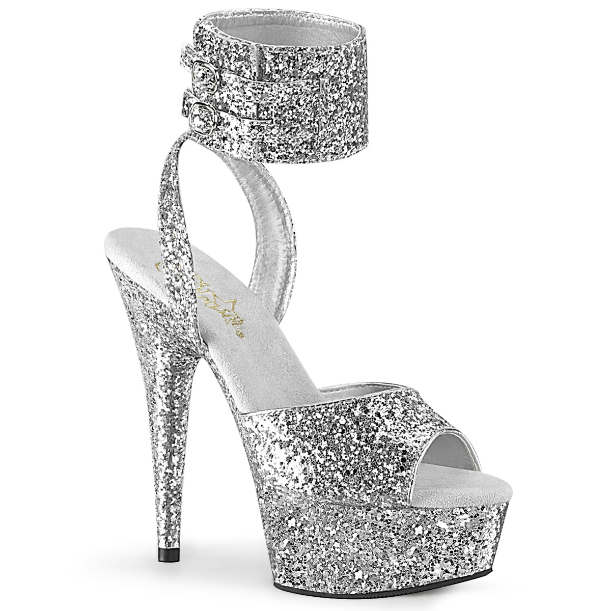Strieborné topánky s remienkom cez kotník na platforme s vysokými podpätkami