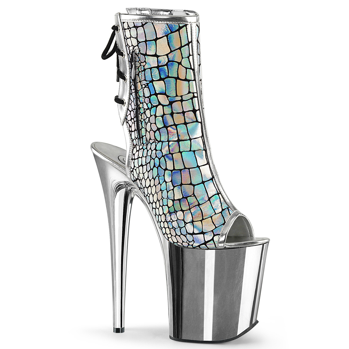 Strieborné čižmy s otvorenou špičkou na vysokej platforme