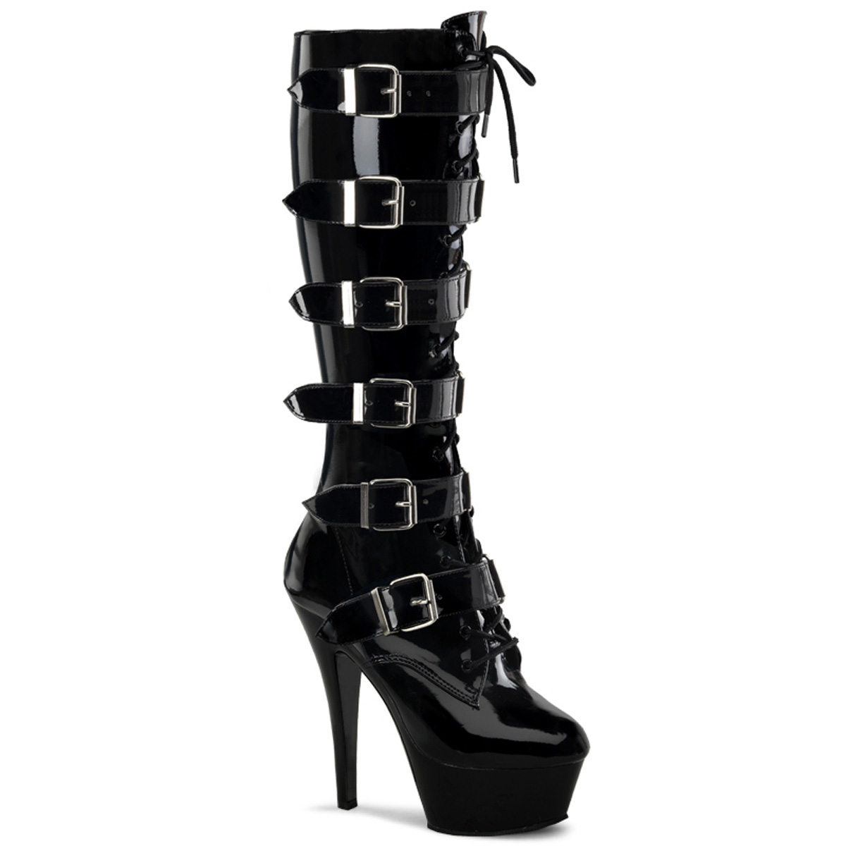 Lesklé čierne čižmy na platforme s vysokými podpätkami