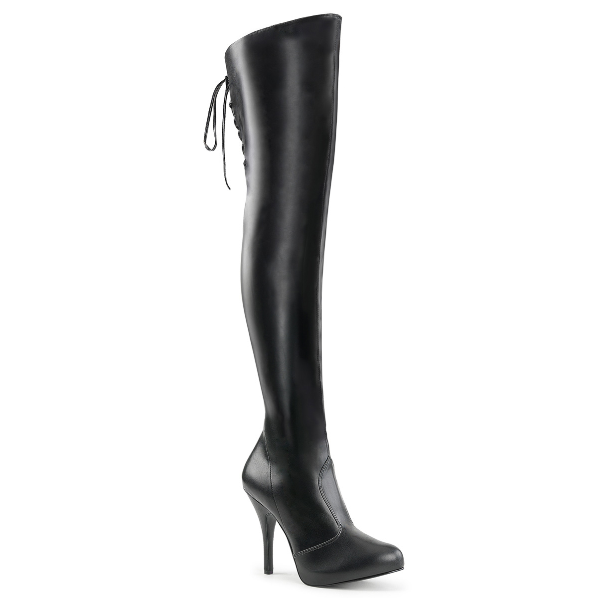 Čierne čižmy nad kolená na opätku na vysokom podpätku