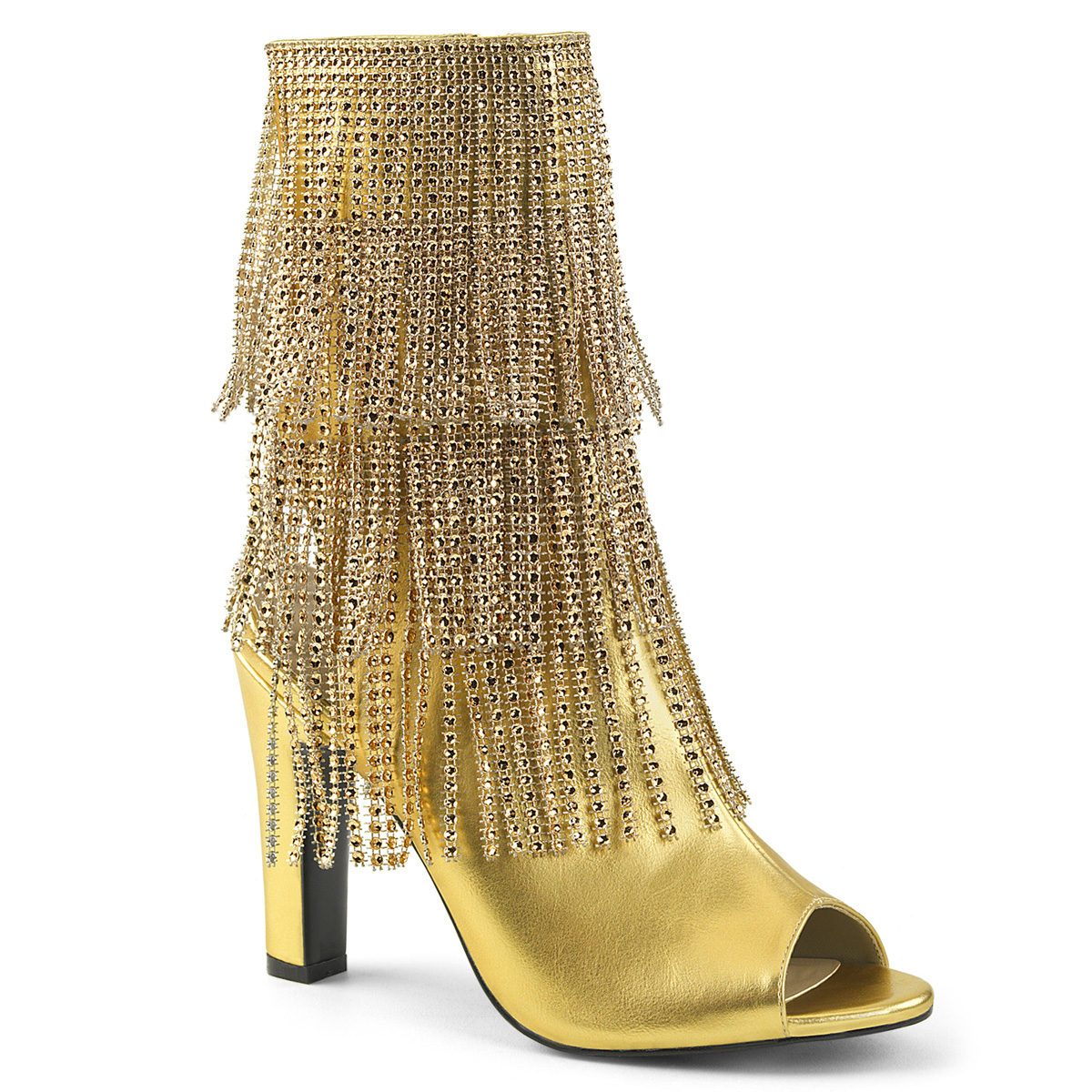 Zlaté kotníkové čižmy na vysokých širokých podpätkoch