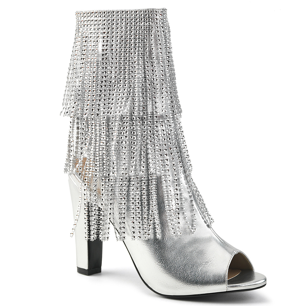 Strieborné kotníkové čižmy na vysokých širokých podpätkoch