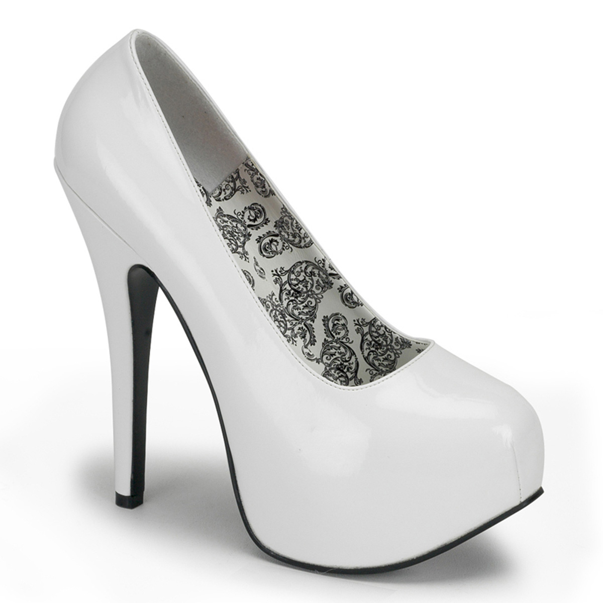 Lesklé biele lodičky na platforme s vysokými podpätkami